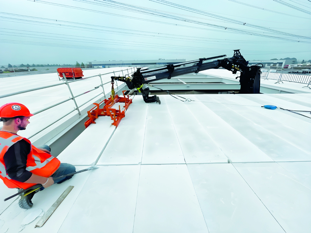Due to limited headroom, the 2,000 roof panels had to be installed from the inside out. Using a truck-mounted crane with a height limiter and tension meter, the installation was carried out step by step to ensure safety and precision. Xella Construction Services managed the entire process, coordinating installation and planning.