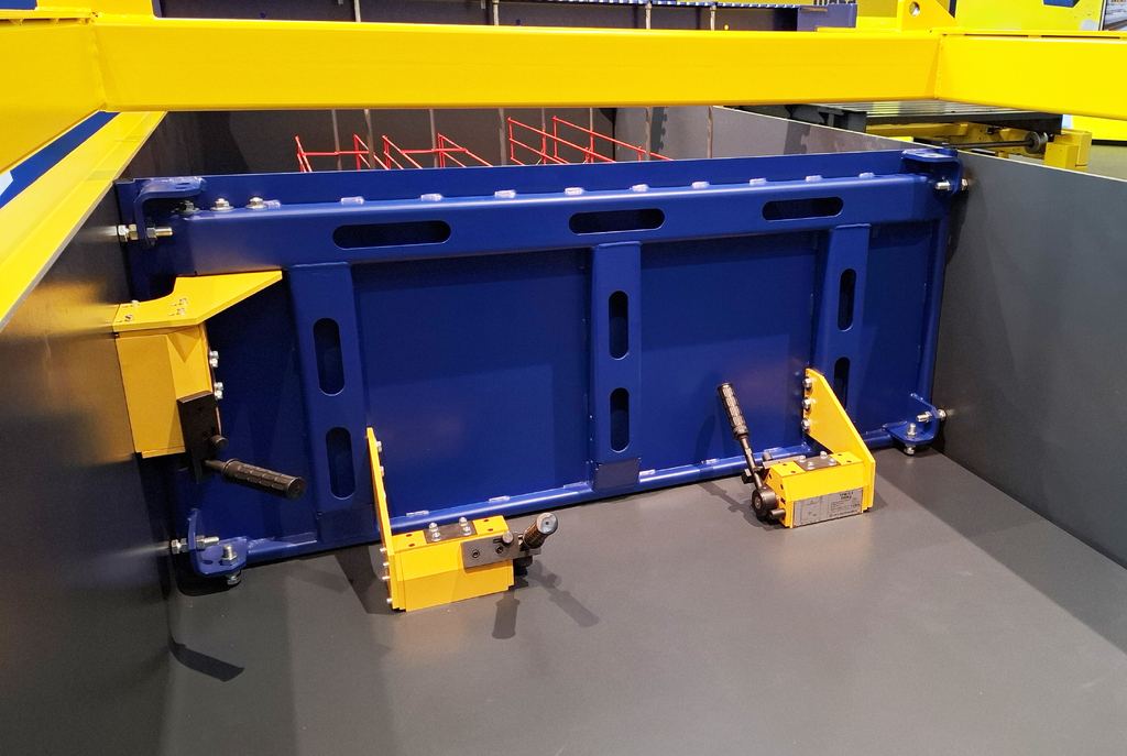 Since these panels are installed flat in buildings, delivering them in a horizontal position greatly simplifies on-site handling. They can be clamped directly from the transport pallet and lifted into place without additional repositioning. To facilitate this, a specially designed tilting table is used: upright panels are loaded onto the table by a forklift, which then gently tilts them into a flat position. This solution is both practical and efficient.