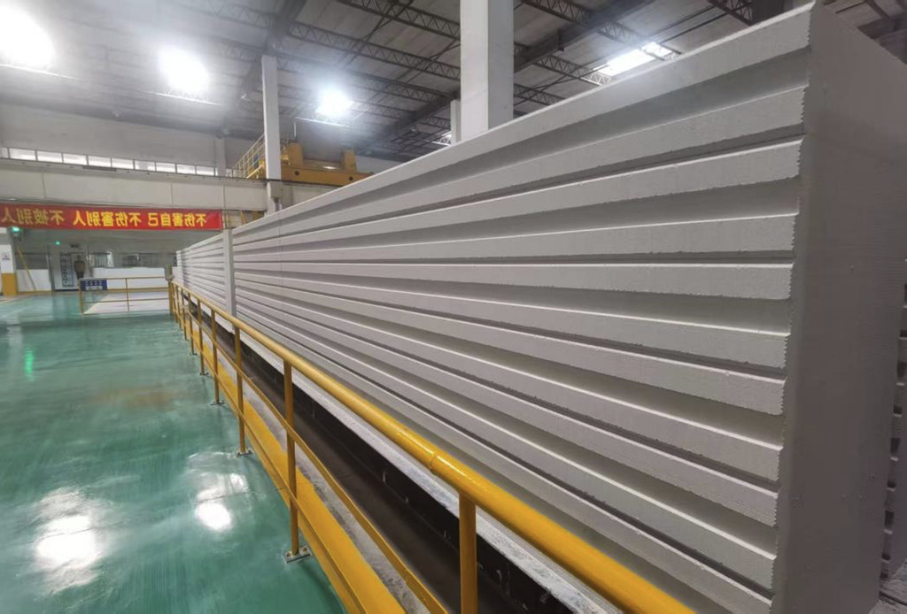 In 2015, the Changxing factory underwent modifications to the cage circulation system and cutting system, initially gaining panel production capability with an annual output of less than 100,000 m³. After acquisition by UBlok in 2019, the number of autoclaves was increased to nine, alongside modifications to the autoclaving and drainage systems, enabling the production of fair-faced wall panels and thin panels (less 100 mm thickness). In 2021, the slurry preparation system was optimized, a green bottom layer removal and dry recovery system via conveyor belt was added, and production scheduling software was launched. In 2022, the automatic panel packaging system was modified. In 2023, the cutting system was optimized, achieving mass production capability for thin panels with widths below 100 mm. A year later, the digital warehouse management and IOT were launched.