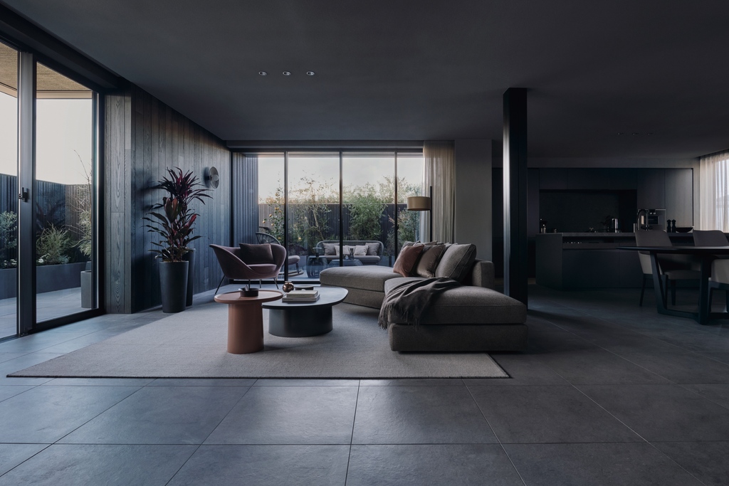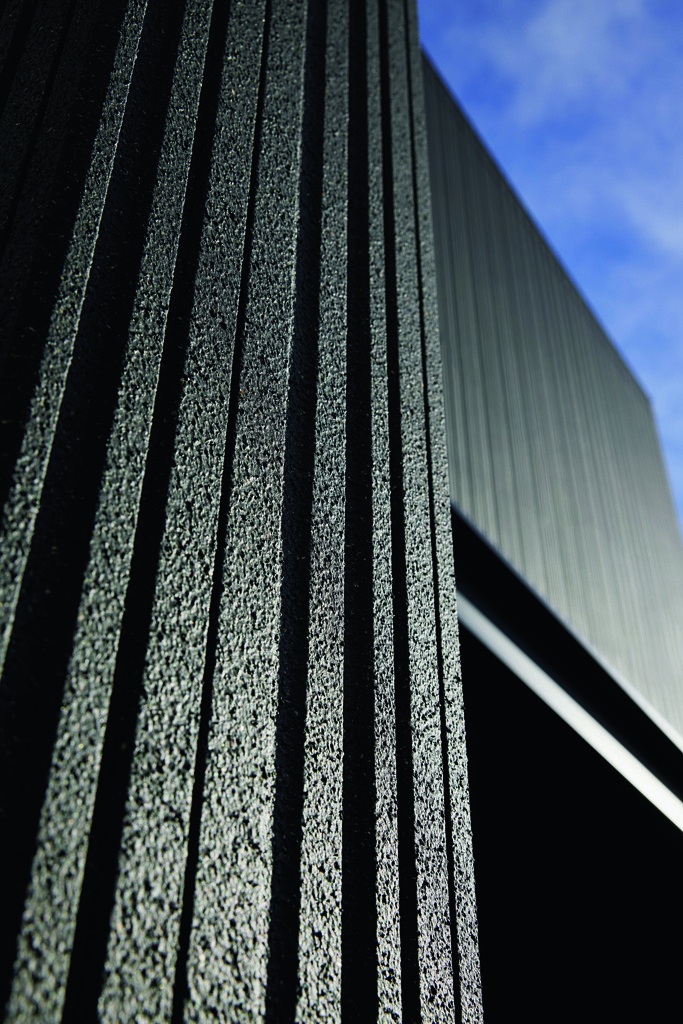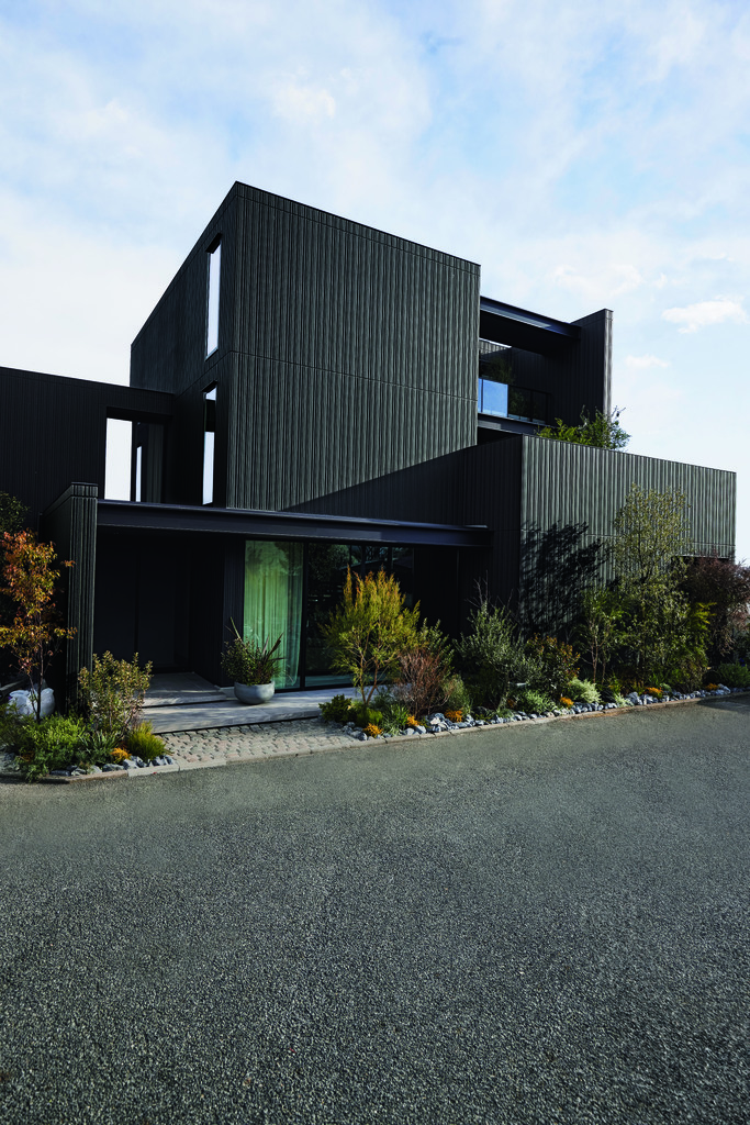 A new exterior wall design, “Random Vertical,” inspired by columnar joints found in nature, features random vertical joints that create a powerful, seamless façade made with autoclaved lightweight concrete (ALC/AAC), giving the building a sense of height and grandeur. The newly introduced “Rhenium Black” exterior wall colour, inspired by the rare mineral rhenium, offers a matte, deeper black than the previous “Genbu” colour, imparting a stately and commanding presence.
