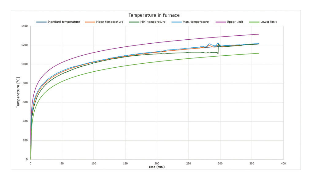 In early 2025, the Łukasiewicz Research Network – Institute of Ceramics and Building Materials launched a new fire resistance testing chamber. The chamber was designed for tests lasting up to 6 hours. As part of the commissioning process, a six-hour operational test was required, in accordance with the standards PN-EN 1363 [5][6] and PN-EN 1365 [7] series. A test sample had to be selected that would maintain the fire resistance criteria of load-bearing capacity (R), integrity (E), and insulation (I) for 360 minutes of fire exposure.