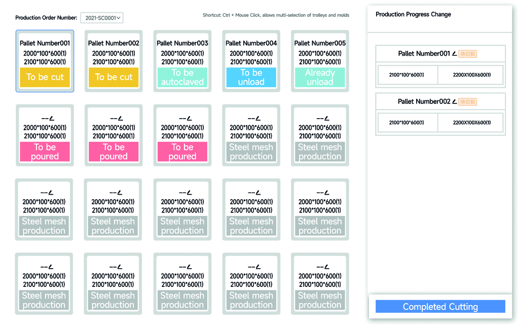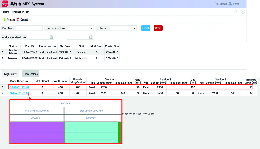 By screening product information such as delivery date, product bulk density, panel thickness, and panel length, intelligent combined mold production for similar specification products from different batches is achieved. This enhances the in-mold panel yield rate, reduces production batches, enables more detailed, efficient, and economical planned production, and schedules raw material supply and executes production based on the production plan.