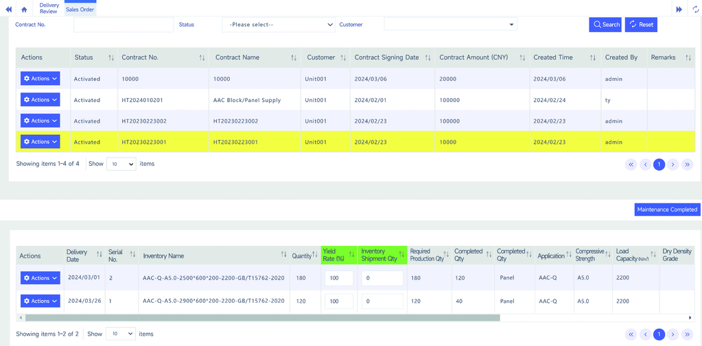 Sales orders are formed by importing data associated through a CRM system or manually entered into the system. Within the system's order pool, products of different specifications, quantities, and delivery dates are gradually screened and matched based on priority rules, achieving batch production and intelligent mold allocation.