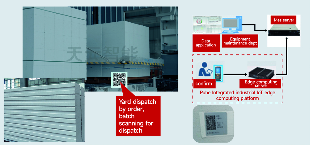 When products leave the autoclave, QR codes are printed or attached. These QR codes link the product batch, specification information, storage location information, customer information, construction location information, and manufacturing information stored in the server. This creates a unified code for product inbound/outbound logistics, logistics, and application. Relevant information can be obtained by scanning the QR code via WeChat (or similar application), facilitating customer application management.